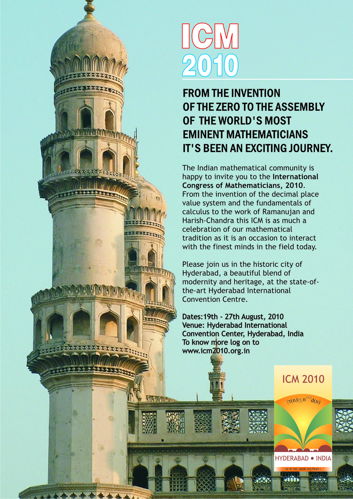 Οι αφίσες του Διεθνούς Μαθηματικού συνεδρίου, που έγινε 19 - 27 Αυγούστου 2010, στην Ινδία (Hyderabad).