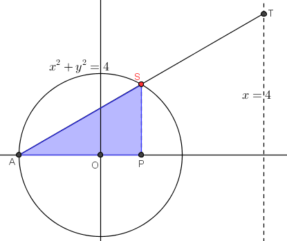 Δίνεται ο κύκλος $x^2+y^2=4$ και το σημείο του $A(-2,0)$. Σημείο $S$ διαφορετικό του $A$, κινείται επί του κύκλου, ενώ $P$ είναι η προβολή του επί του $x$- άξονα.