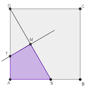Στην πλευρά $AB$ (μήκους $a$) τετραγώνου $ABCD$, κινείται σημείο $S$. Η μεσοκάθετος του $DS$ τέμνει την $AD$ στο $T$.