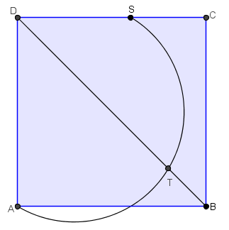 Σημείο $S$ βρίσκεται στην πλευρά $DC$, τετραγώνου $ABCD$. Ημικύκλιο με διάμετρο $AS$,τέμνει τη διαγώνιο $BD$ στο σημείο $T$.